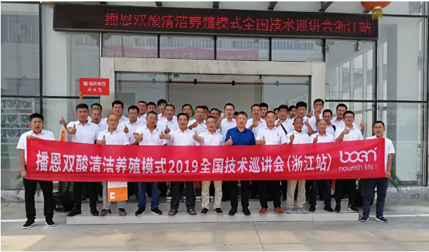 2019年8月19日—20日,播恩雙酸清潔養殖模式2019全國技術巡講會(浙江站)在湖州市順利召開。此次會議由東部戰區、北部戰區聯合舉辦,共計邀請安徽、江蘇、浙江、山東等地的50余位客戶,播恩集團副總裁曹劍波、播恩集團顧問章紅兵教授、東部戰區總監簡毅科、北部戰區總監白林杰等相關領導出席會議。