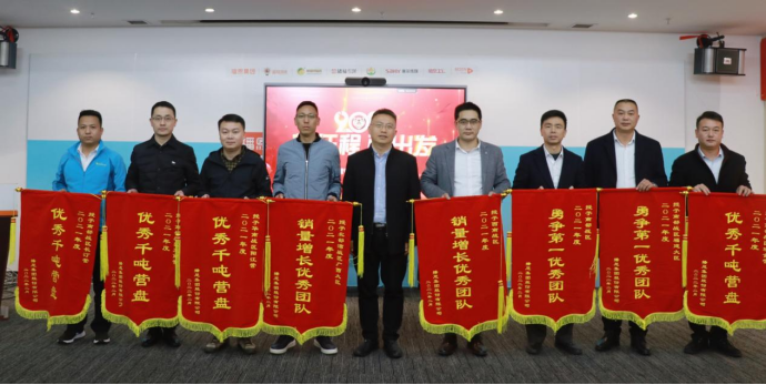 頒獎儀式由播恩集團人力資源中心陳頌芬經理主持。現場首先宣讀了《2021年營銷評審通報》,并依次頒發了銷量增長優秀團隊獎、勇爭第一優秀團隊獎和優秀千噸營盤獎。