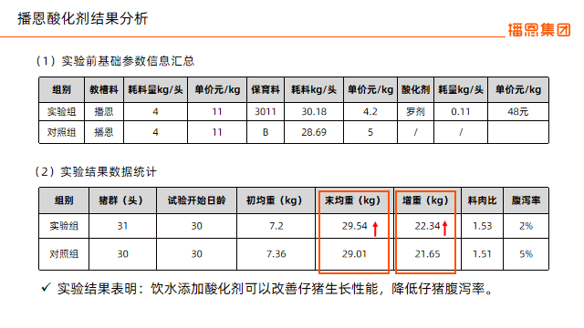 向老師還在現(xiàn)場展示了四組對比實證數(shù)據(jù),從保育豬飲水酸化、懷孕母豬飲水酸化兩個角度印證液體酸化劑的作用。實驗表明,保育豬和懷孕母豬飲水使用播恩雙酸養(yǎng)殖模式酸化劑后,回報率大大提升。