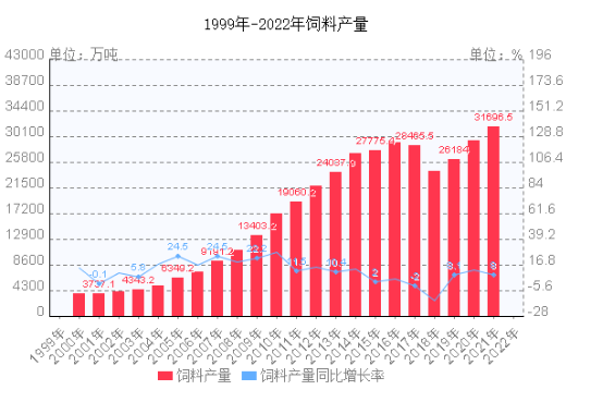 飼料產(chǎn)量總體增長(zhǎng),其中生物飼料以年均20%的速度遞增