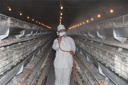 由于冬春交替時節(jié)天氣仍舊寒冷,畜禽圈舍常常處于封閉狀態(tài),空氣流通性比較差,加之圈舍內(nèi)部陰暗、潮濕、寒冷,因此極易引發(fā)呼吸道傳染病,所以,防止疫病發(fā)生至關(guān)重要。要定期對畜舍進行消毒,保證飼養(yǎng)環(huán)境的清潔衛(wèi)生。推薦每周用過氧乙酸、播恩酸化劑、百毒殺、或者戊二醛對圈舍消毒一次,消毒劑應該交替使用,避免病原菌和病毒對消毒劑產(chǎn)生耐藥性。每次清理料槽后,使用聚維酮碘對料槽進行消毒。此外為了避免因為人的原因?qū)е录倚笊?,工作人員每次進出畜舍之前,都要到消毒間進行消毒,消毒間內(nèi)設(shè)超聲波霧化消毒系統(tǒng),消毒間外以及圈舍外部地面鋪設(shè)生石灰。要經(jīng)常觀察家畜的精神狀態(tài)、食欲、糞便等情況,及時發(fā)現(xiàn)疫情,及時治病。