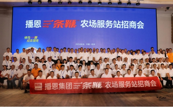 在清風細雨中,在七大古都之一,美麗的浙江杭州,傳來喜報。播恩集團一條鞭農場服務站啟動儀式暨招商會順利召開,現場參會客戶人數一百余人,一條鞭預混料訂單破千噸。