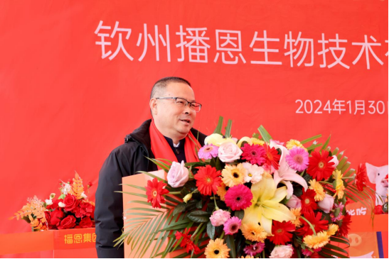 曾紹鵬總經(jīng)理在致辭時(shí)指出,養(yǎng)豬種糧是民生之本,飼料營養(yǎng)是關(guān)鍵。播恩集團(tuán)作為中國飼料行業(yè)和飼料添加劑行業(yè)的領(lǐng)軍企業(yè),已于2023年在深交所上市。播恩現(xiàn)攜“合成生物”重器來奔赴八桂邕川之約,從廣西的入海口欽州起步,持續(xù)“傳播農(nóng)業(yè)智慧,提升生命品質(zhì)”事業(yè)之旅,走上播恩的鄉(xiāng)村振興之路。播恩中國4.0時(shí)代,將把“清潔、安全、高效、健康”帶給廣大家庭農(nóng)場,帶給廣袤的八桂大地。播恩,致力于打造廣西生物飼料第一工廠。