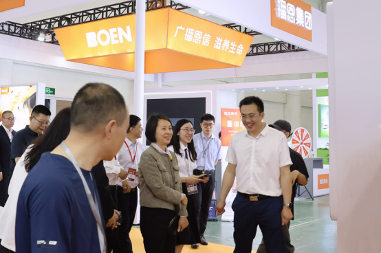 廣東省農業農村廳二級巡視員廖紀坤(圖左三)等領導一行蒞臨播恩展位參觀指導