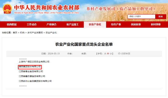 “農業產業化國家重點龍頭企業”是我國農業企業中含金量極高的榮譽之一,由農業農村部、國家發展和改革委員會、財政部、商務部、中國人民銀行、國家稅務總局、中國證券監督管理委員會、中華全國供銷合作總社等8個國家部門共同認定。其認定過程十分嚴格,涵蓋企業申報、各地推薦、專家評審、部門審核、媒體公示等多個環節,只有最終達標的企業才可獲此殊榮。
