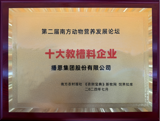 此次獲獎,是對播恩的高度認可,也是對其為推動動物營養行業發展所做貢獻的充分肯定。播恩將以此次獲獎為激勵,繼續發揮行業引領作用,持續以生物技術推動創新,為推動動物營養行業的高質量發展貢獻力量,不斷創造新的輝煌。