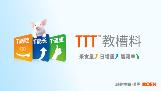 播恩集團,是仔豬配合飼料國家標準和團體標準制定者,長期專注于幼小動物營養領域,堅持科技創新、品質至上的發展理念,不斷投入研發資源,以生物技術為支撐,致力于為行業提供高品質、高效能的教槽料產品。其中以TTT教槽料表現尤為出色,產品以“T 能吃、T 能長、T 健康”的3T優勢著稱。“T能吃”,TTT教槽料中含有20%以上的乳制品,其營養和口感近似母乳,再加上獨特配方融合了粉料與粒料的長處,仔豬們十分喜愛。“T能長”則得益于其采用的OEN效能營養技術體系,以及原料預消化加工工藝,能讓仔豬吃得好,長得壯。而“T健康”,是由于它是無抗飼料且無豬同源蛋白,同時添加了電解質平衡劑、造血活性物質、高含量的免疫促進物質(如免疫球蛋白、植物提取物、黃酮、多糖等)與抗應激劑等科學成分,為仔豬的健康成長構建了堅實的屏障。