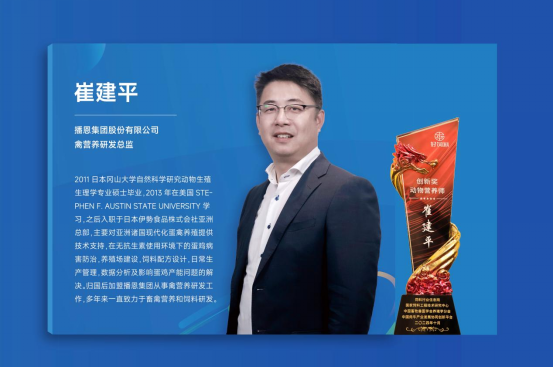 此次獲獎,是對崔建平博士專業能力與創新精神的高度認可,更是對播恩蛋雞料研發成果的肯定。展望未來,播恩集團將持續加大蛋雞料研發投入,推出更多創新優質產品,攜手養殖戶共創畜牧行業美好未來,持續引領蛋雞料行業創新發展潮流。