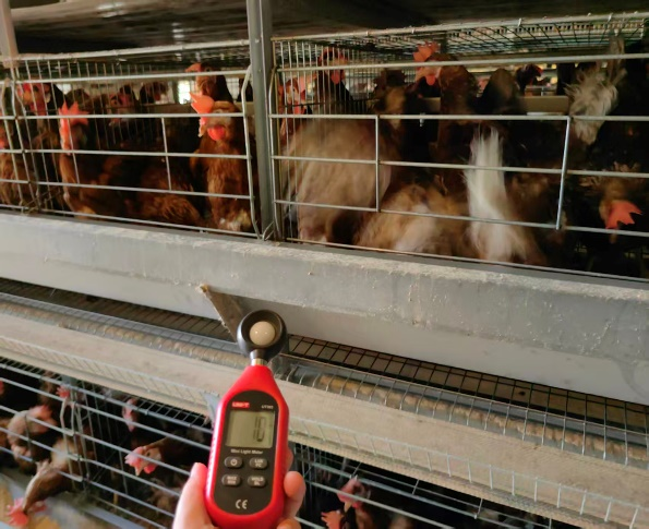 3.3.2光照強度:維持在 10~15勒克斯(籠養層面),定期擦拭燈泡,防止灰塵覆蓋影響光照效果。見圖1。